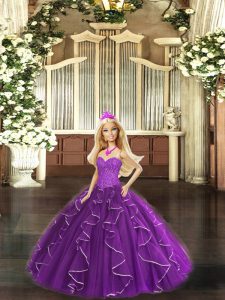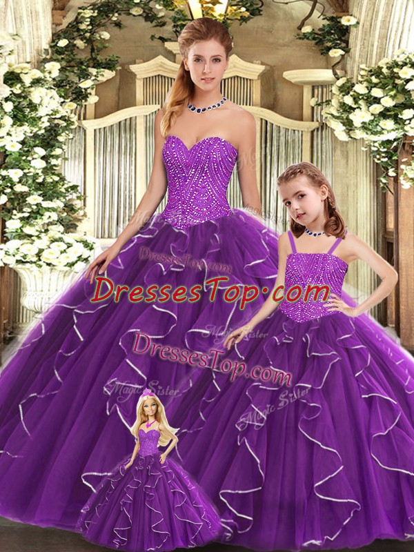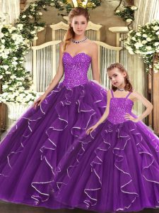 Attractive Organza Sweetheart Sleeveless Lace Up Beading and Ruffles Sweet 16 Dress in Purple