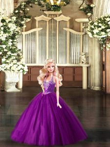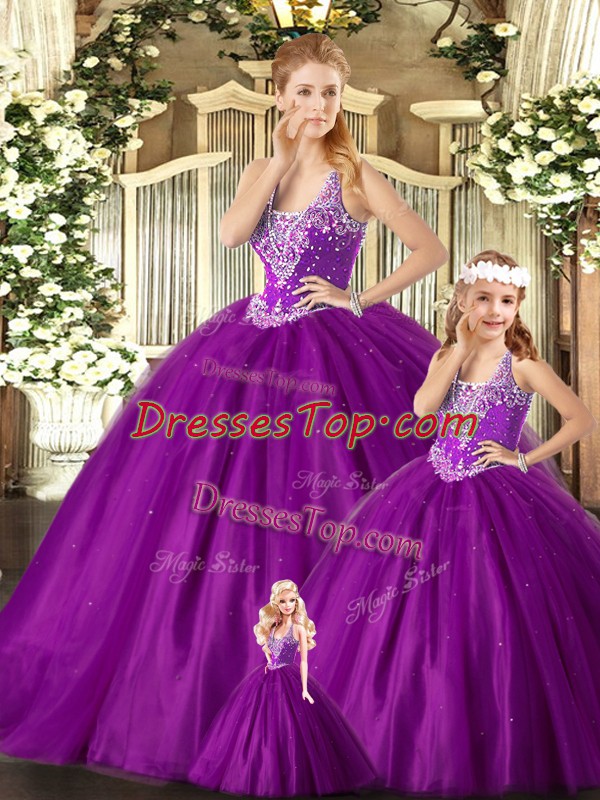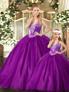 Attractive Purple Straps Neckline Beading Sweet 16 Dresses Sleeveless Lace Up