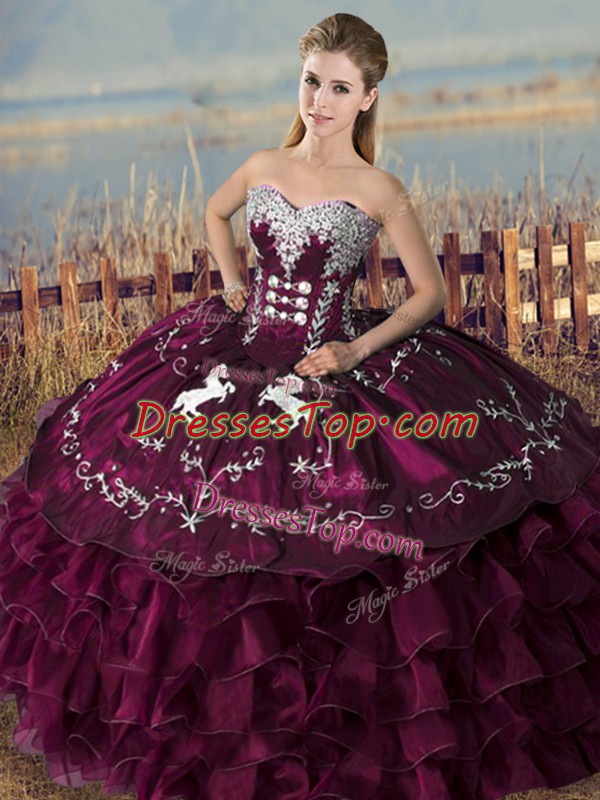 Attractive Satin and Organza Sleeveless Floor Length Sweet 16 Dresses and Embroidery and Ruffles