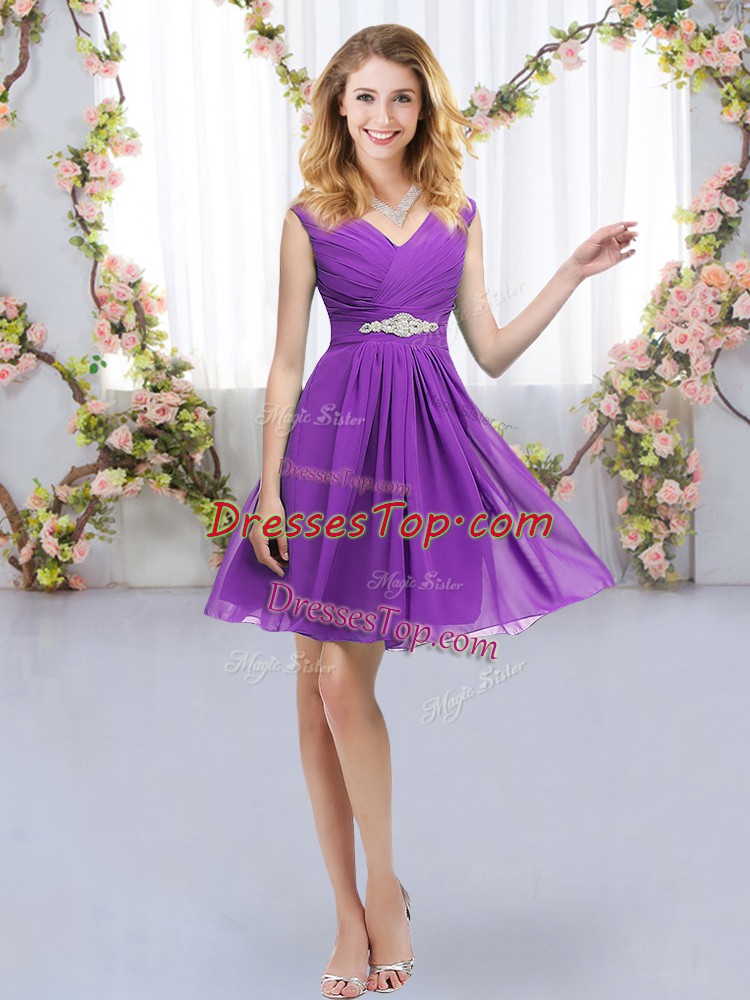Attractive Sleeveless Chiffon Mini Length Zipper Court Dresses for Sweet 16 in Eggplant Purple with Belt