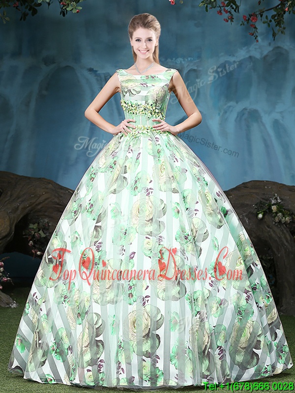 Attractive Straps Straps Sleeveless Lace Up Floor Length Appliques Sweet 16 Dresses