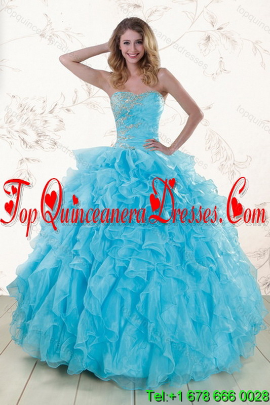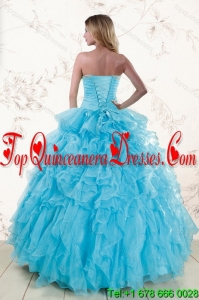 Baby Blue 2015 Modern Sweet 16 Dresses with Beading and Ruffles