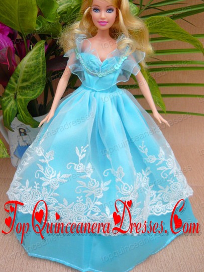 Baby Blue and Off The Shoulder Ball Gown for Barbie Doll