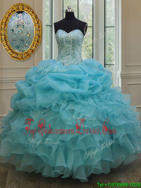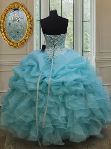 Baby Blue Ball Gowns Beading and Pick Ups Ball Gown Prom Dress Lace Up Organza Sleeveless Floor Length