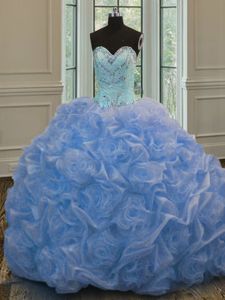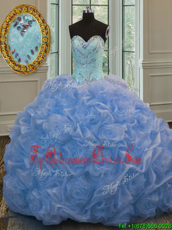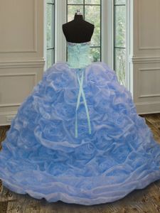 Baby Blue Ball Gowns Sweetheart Sleeveless Organza Floor Length Lace Up Beading Ball Gown Prom Dress