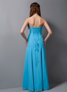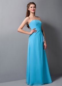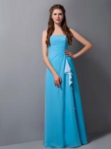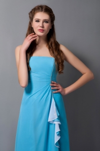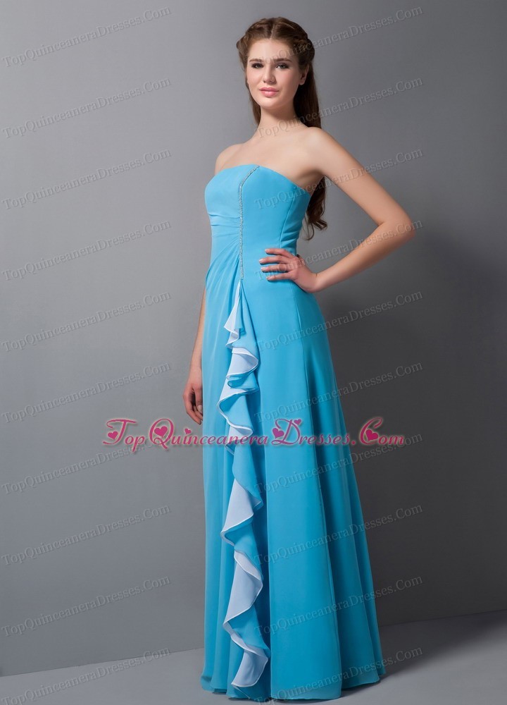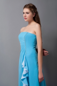 Baby Blue Dama Party Dress Ruffles Column Strapless Chiffon