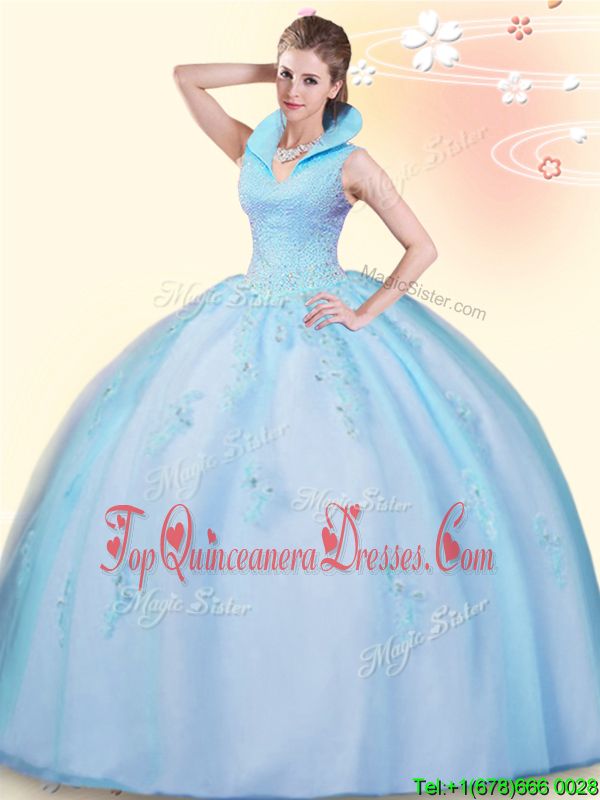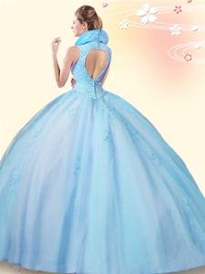 Baby Blue High-neck Backless Beading and Appliques Quinceanera Gown Sleeveless