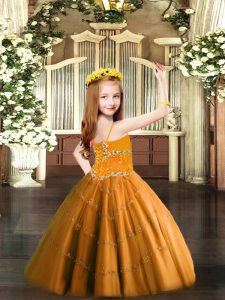 Baby Blue Lace Up Girls Pageant Dresses Beading Sleeveless Floor Length