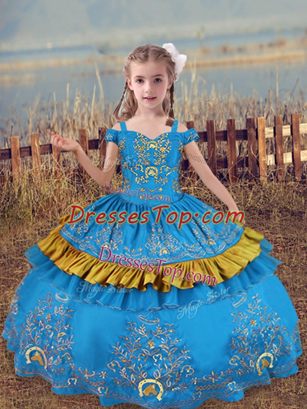 Baby Blue Lace Up Pageant Dress for Teens Beading and Embroidery Sleeveless Floor Length