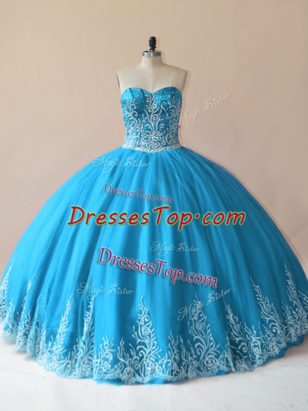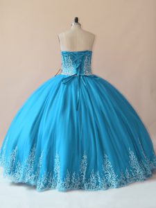Baby Blue Lace Up Quinceanera Dress Embroidery Sleeveless Floor Length