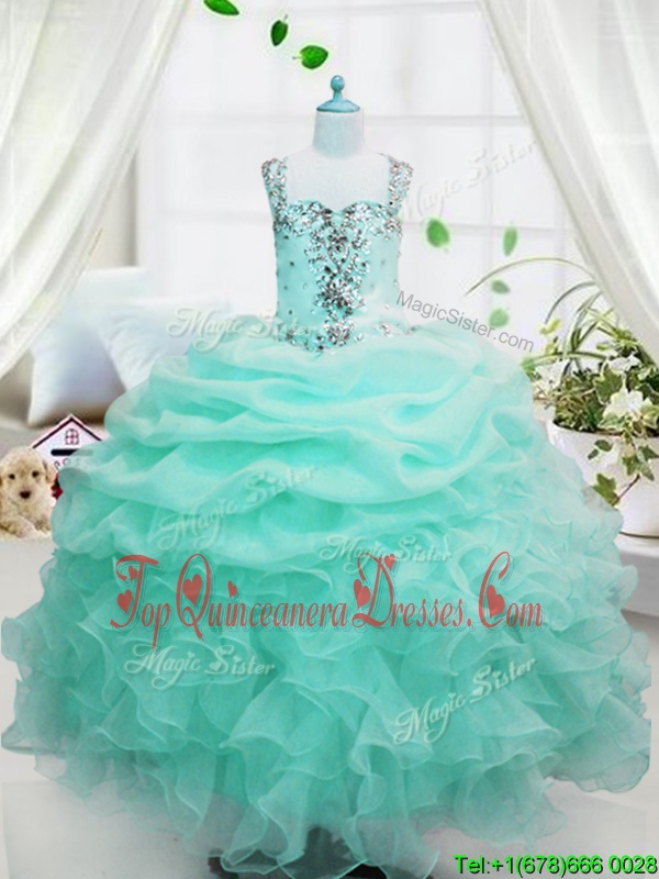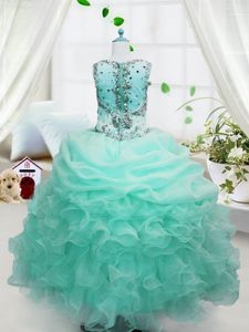 Baby Blue Lace Up Straps Beading and Ruffles and Pick Ups Little Girl Pageant Gowns Organza Sleeveless
