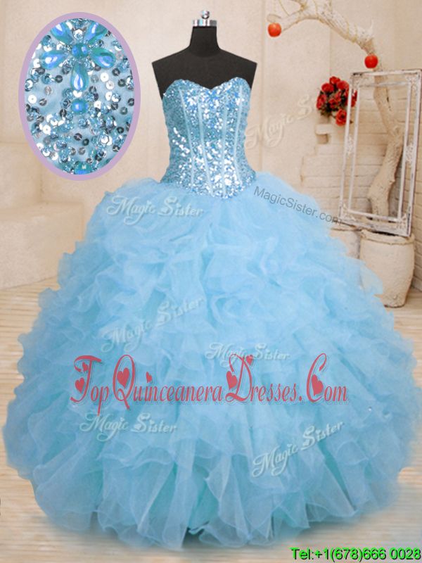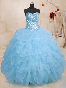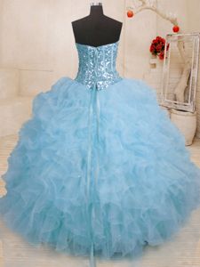 Baby Blue Organza Lace Up 15 Quinceanera Dress Sleeveless Floor Length Beading and Ruffles
