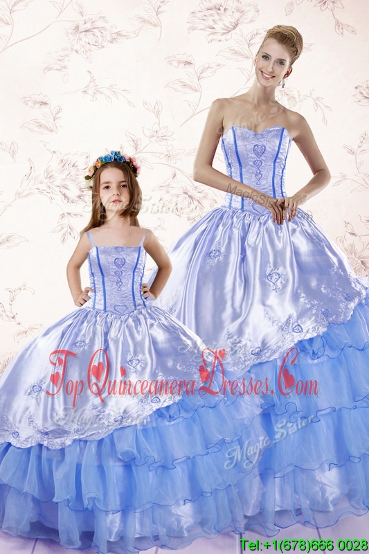 Baby Blue Organza Lace Up Sweetheart Sleeveless Floor Length 15 Quinceanera Dress Beading and Ruffled Layers