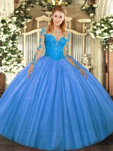 Baby Blue Scoop Neckline Lace Sweet 16 Dresses Long Sleeves Lace Up