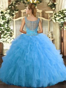 Baby Blue Sleeveless Beading and Ruffled Layers Floor Length Quinceanera Dress