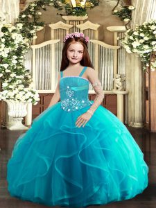 Baby Blue Sleeveless Beading and Ruffles Floor Length Child Pageant Dress