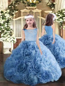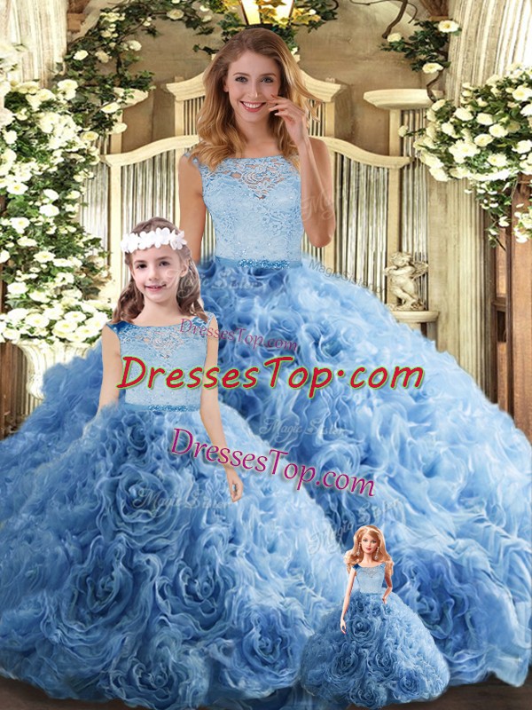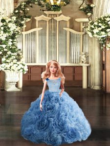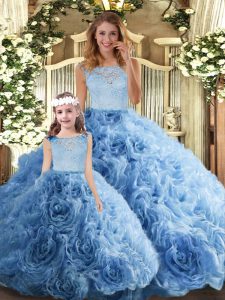 Baby Blue Sleeveless Fabric With Rolling Flowers Zipper Quince Ball Gowns for Military Ball and Sweet 16 and Quinceanera