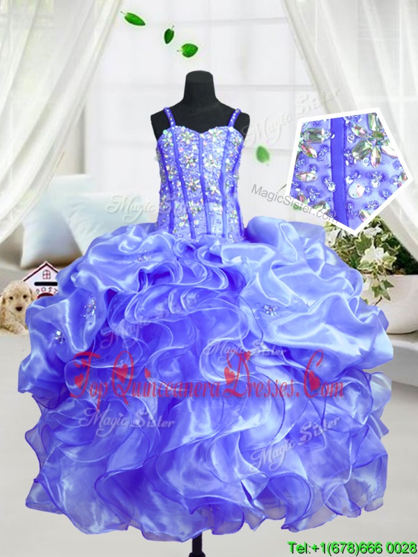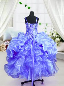 Baby Blue Sleeveless Organza Lace Up Child Pageant Dress for Military Ball and Sweet 16 and Quinceanera