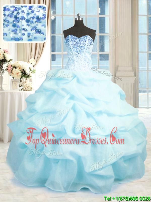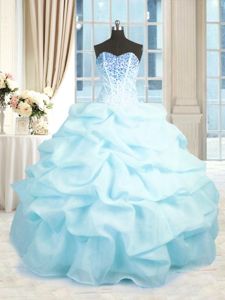 Baby Blue Sleeveless Organza Lace Up Quinceanera Gown for Military Ball and Sweet 16 and Quinceanera