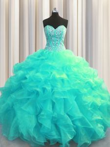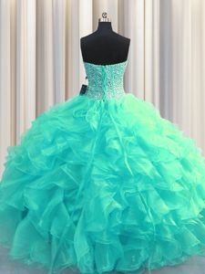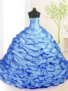 Baby Blue Sweetheart Lace Up Beading and Appliques and Ruffled Layers Quince Ball Gowns Sleeveless