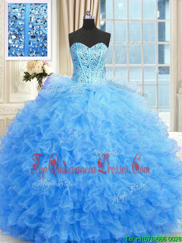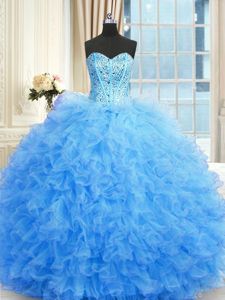 Baby Blue Sweetheart Lace Up Beading and Ruffles 15 Quinceanera Dress Sleeveless