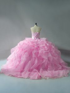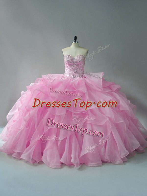 Baby Pink 15 Quinceanera Dress Sweet 16 and Quinceanera with Beading and Ruffles Sweetheart Sleeveless Lace Up