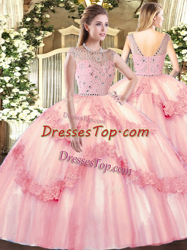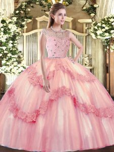 Baby Pink Bateau Neckline Beading and Appliques Sweet 16 Dresses Sleeveless Zipper