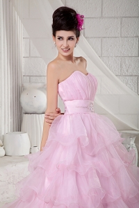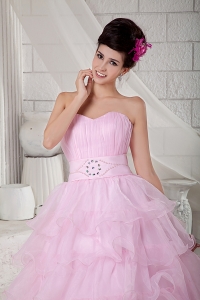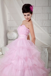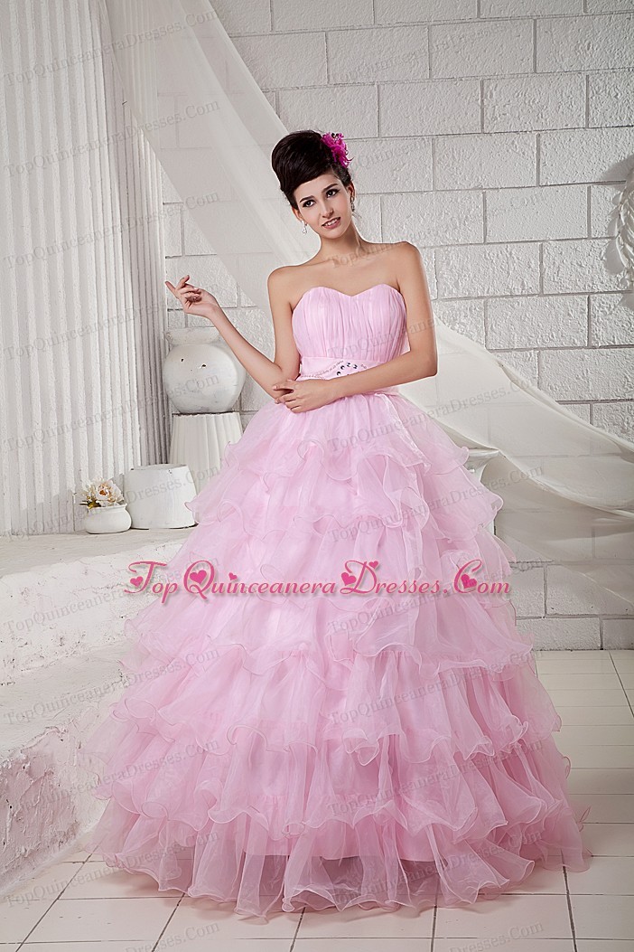 Baby Pink Beading Floor-length Sweet 16 Dress Sweetheart
