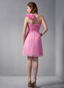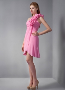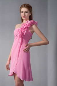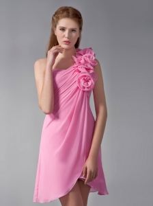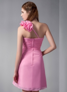 Baby Pink Dama Dress Empire Mini-length Chiffon One Shoulder