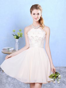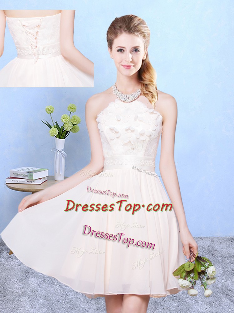 Baby Pink Empire Lace Vestidos de Damas Lace Up Chiffon Sleeveless Knee Length