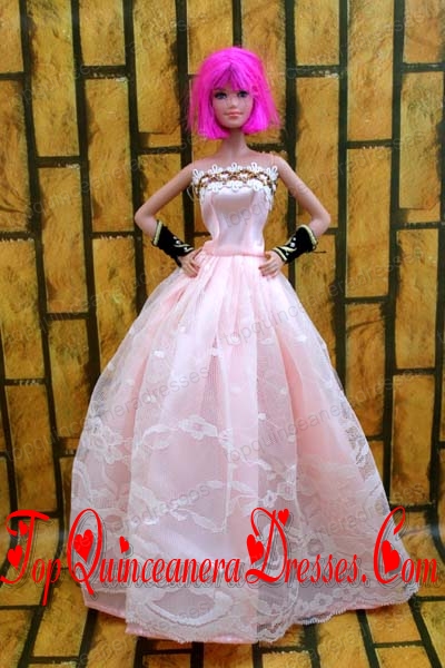 Baby Pink Gown For Barbie Doll With Lace and A-line