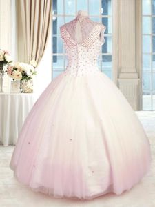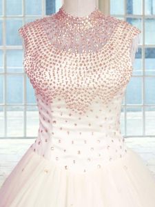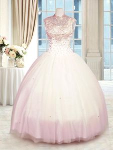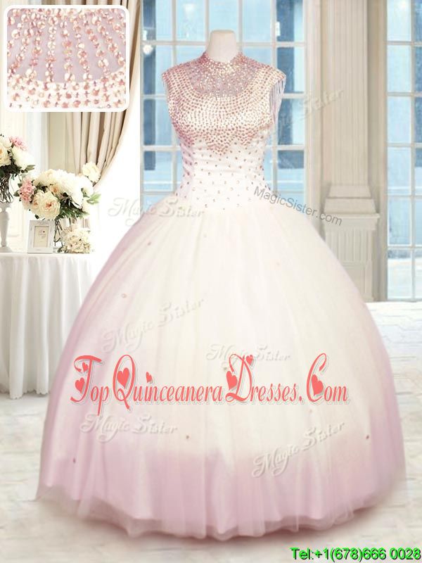 Baby Pink High-neck Zipper Beading Sweet 16 Dresses Sleeveless
