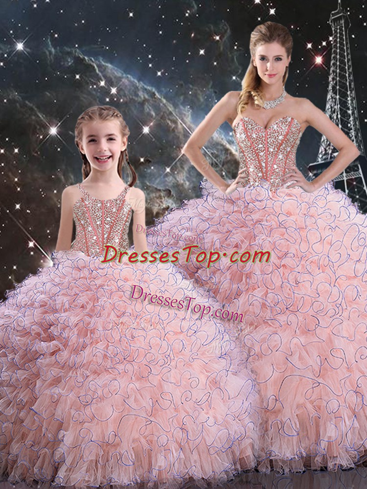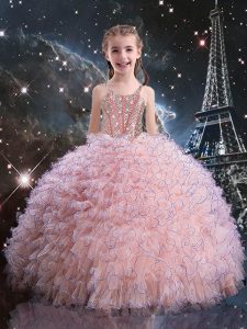 Baby Pink Organza Lace Up Sweetheart Sleeveless Floor Length 15 Quinceanera Dress Beading and Ruffles