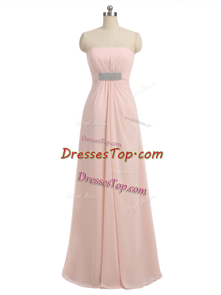 Baby Pink Strapless Side Zipper Beading Vestidos de Damas Sleeveless