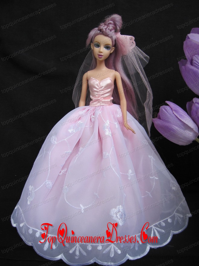 Baby Pink Sweetheart Ball Gown Lace and Ruch Wedding Dress For Barbie Doll