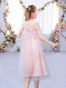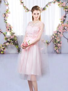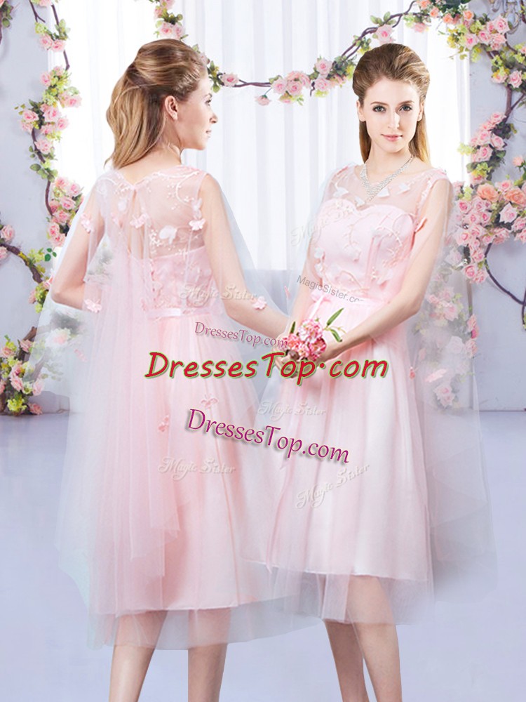 Baby Pink V-neck Neckline Appliques and Belt Dama Dress Sleeveless Lace Up