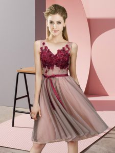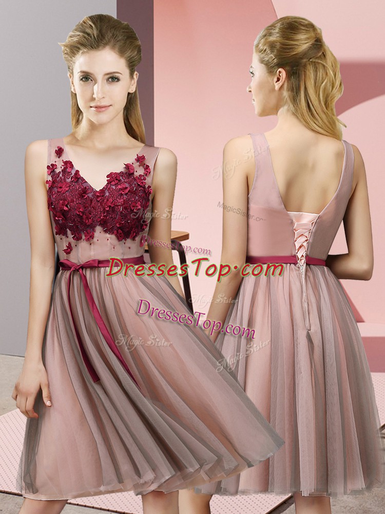 Baby Pink V-neck Neckline Appliques Court Dresses for Sweet 16 Sleeveless Lace Up