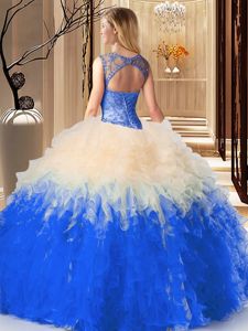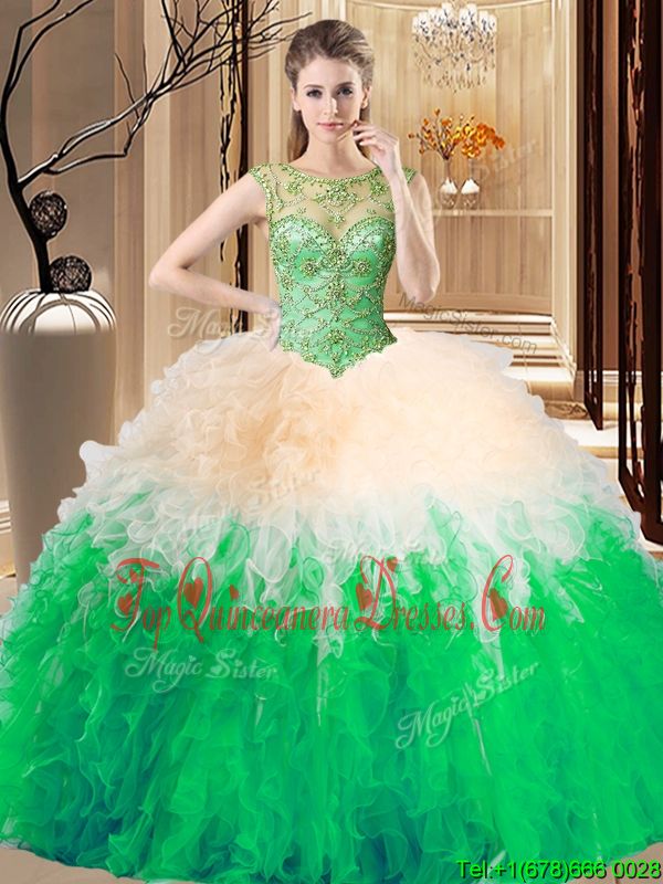 Backless Multi-color Sleeveless Beading and Ruffles Floor Length Sweet 16 Dress