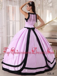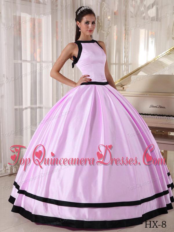 Ball Gown Bateau Floor-length Satin Quinceanera Dress in Baby Pink and Black