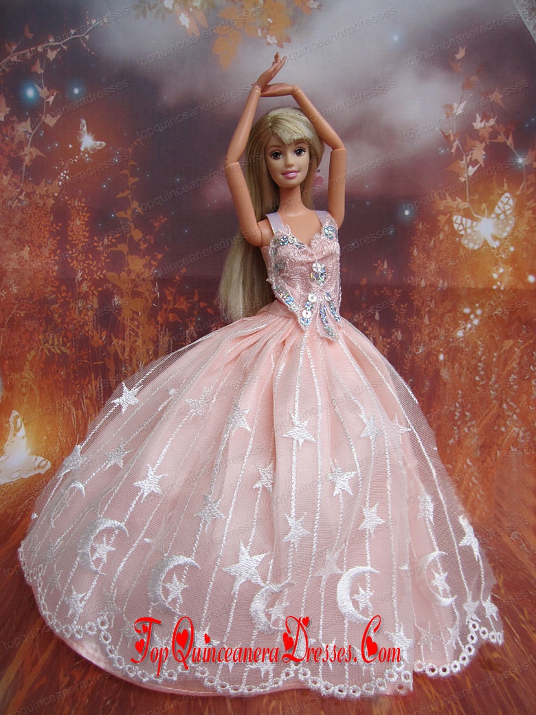 Ball Gown Lace and Appliques Baby Pink Handmade Dresses Fashion Party Clothes Gown Skirt For Barbie Doll