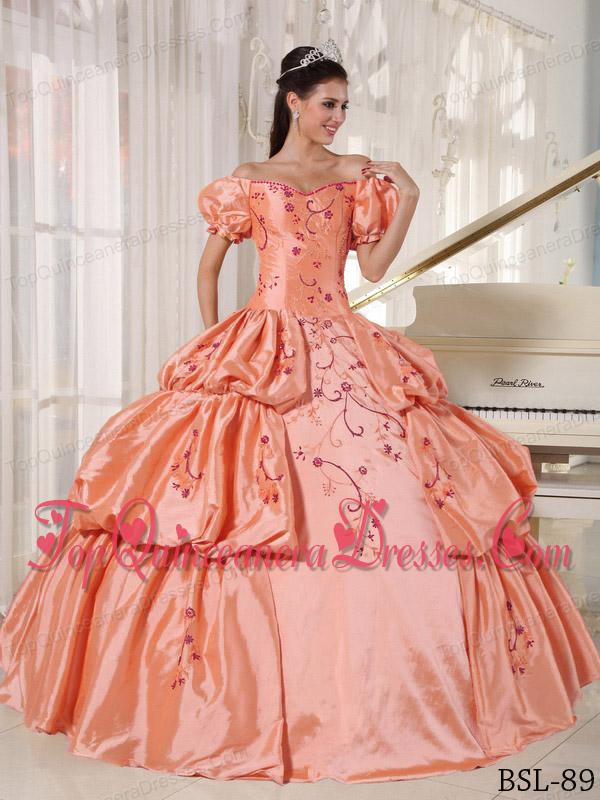 Ball Gown Off The Shoulder Floor-length Taffeta Embroidery Quinceanera Dress