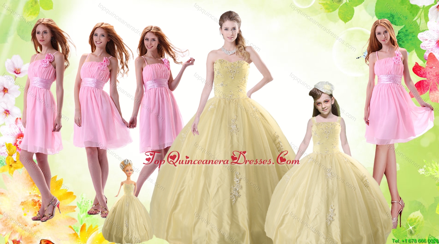 Ball Gown Quinceanera Dress and Ruching Baby Pink Dama Dresses and Floor Length 2015 Little Girl Dress