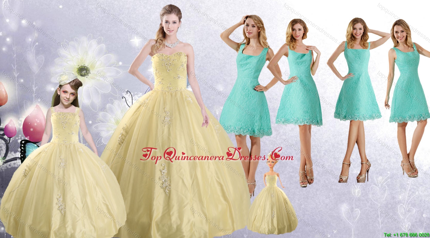 Ball Gown Quinceanera Dress and Square Knee Length Dama Dresses and Cute Beading Little Girl Dress