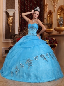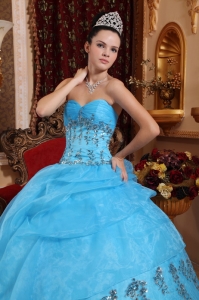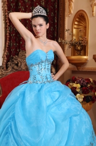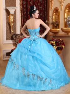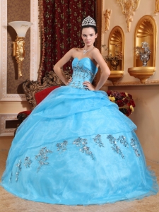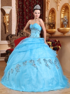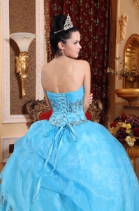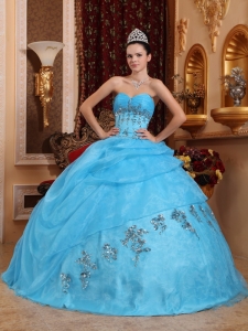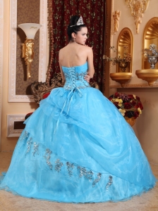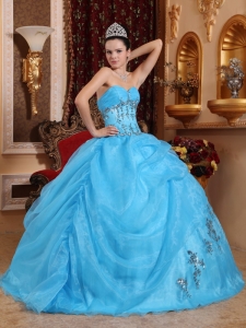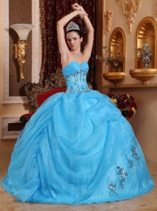 Ball Gown Quinces Dress Aqua Blue Organza Beading Sweetheart