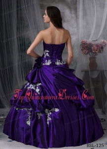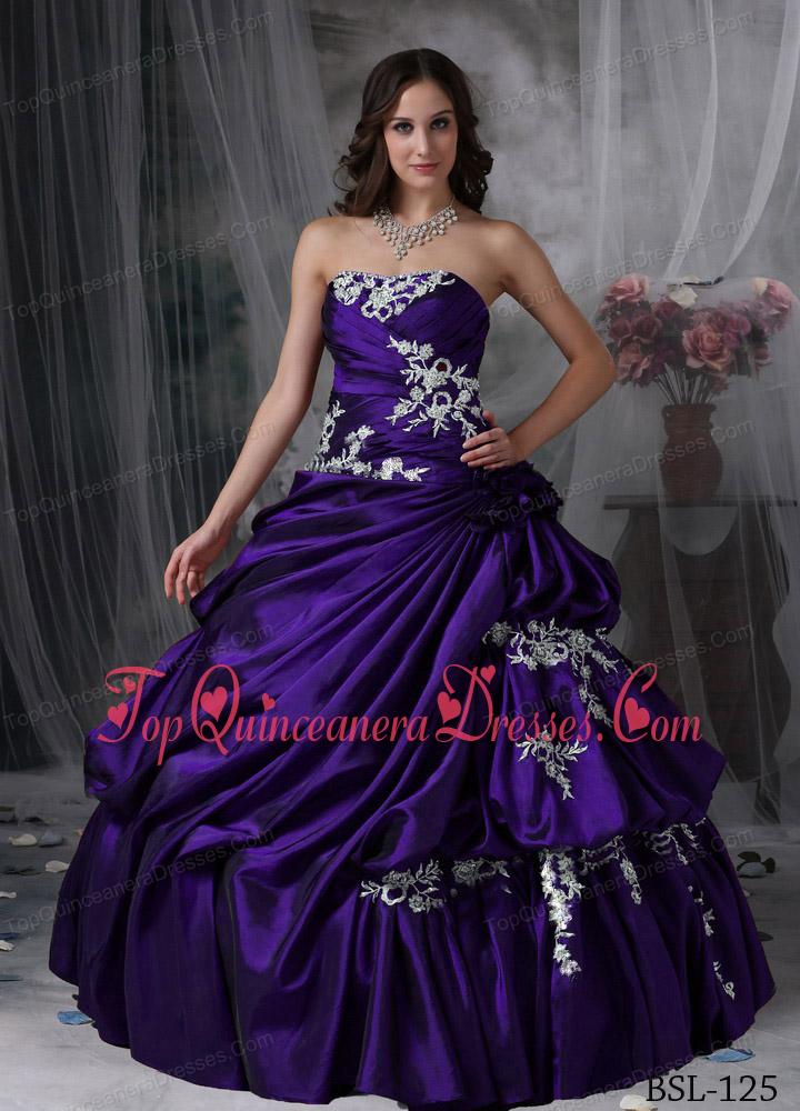 Ball Gown Strapless Floor-length Taffeta Appliques Quinceanera Dress