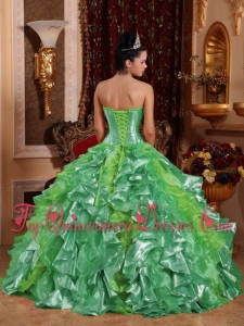 Ball Gown Strapless Green Ruffles Embroidery Luxurious Quinceanera Dresses