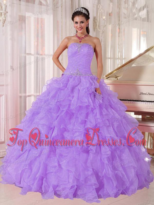 Ball Gown Strapless Lavender Organza Beading New Style Quinceanera Dresses for Party
