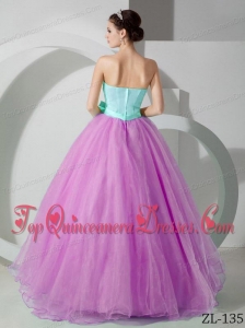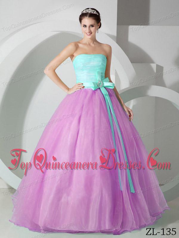 Ball Gown Strapless Lilac and Apple Green Sash and Ruching Quinceanea Dress