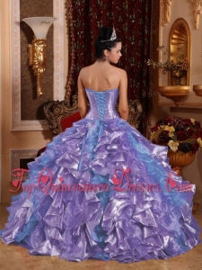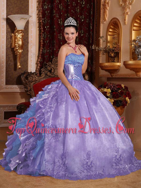 Ball Gown Strapless Ruffles Organza Embroidery Lavender New Style Quinceanera Dresses