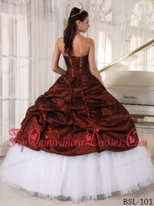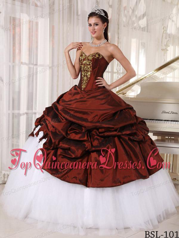 Ball Gown Sweetheart Burgundy and white Floor-length Appliques Quinceanera Dress